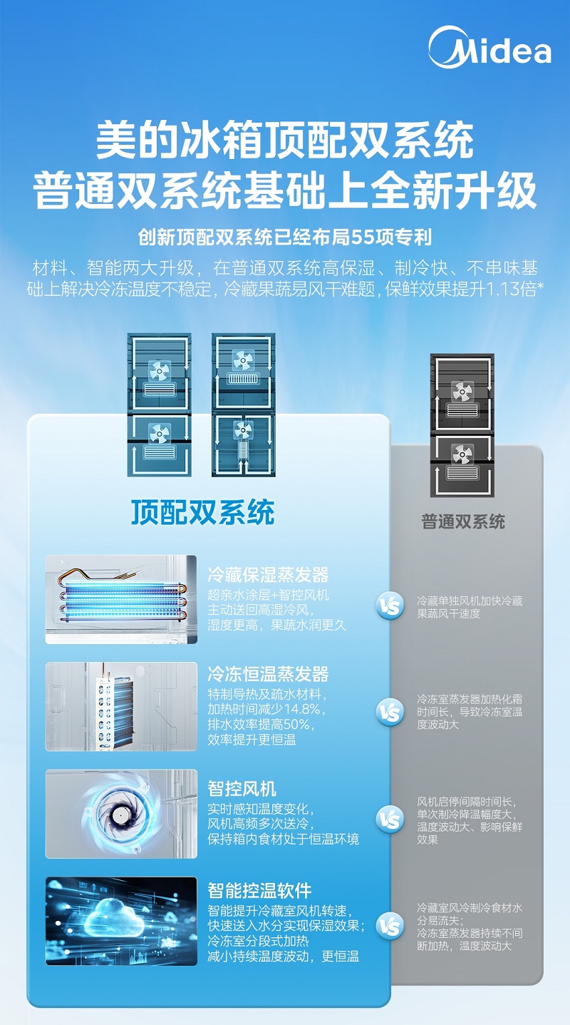 至此从冷藏到冷冻,从果蔬到肉类食材,美的冰箱已完成全空间全食材原鲜技术布局。