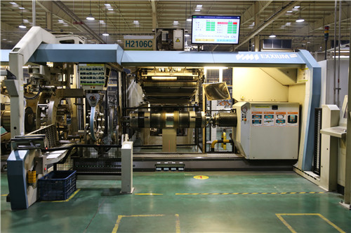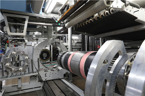 由于成型车间常年恒温恒湿,当记者从高温的室外走进车间时,感受到迎面扑来的清凉舒爽。成型后的轮胎胎胚,会先储存在仓库里,再由空中穿梭的EMS自动运输车调到硫化车间蒸熟。一走进硫化车间,空气又恢复了燥热,经过一段时间的高温、高压硫化,成品轮胎就出锅了。